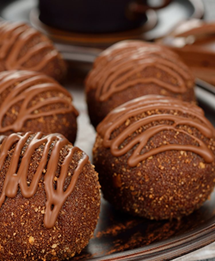 Mash the cake, fold in evaporated milk to make dough. Roll the dough into balls, dip the balls into melted Dr. Oetker Nona Cooking Chocolate and coat with Ground Almond. Ultimate indulgence!