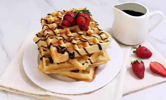 Serve pancakes with drizzle of strawberry sauce and fresh strawberries. Yummilicious!